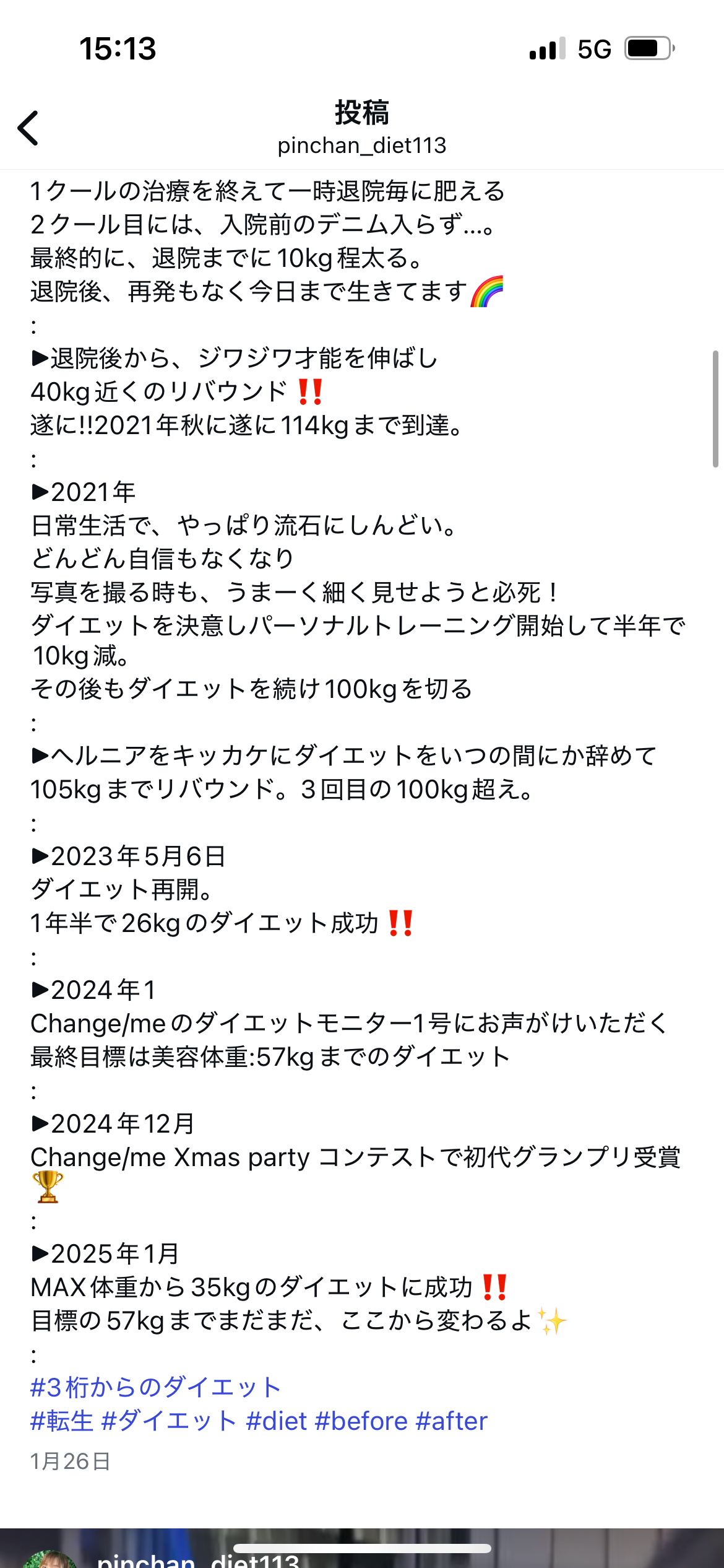 「ぴんちゃん」こと、吉田沙織と申します。これまでのMAX体重は114kgです。